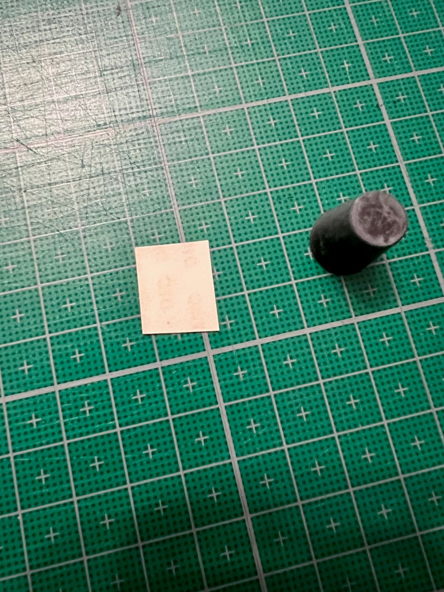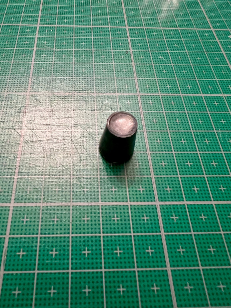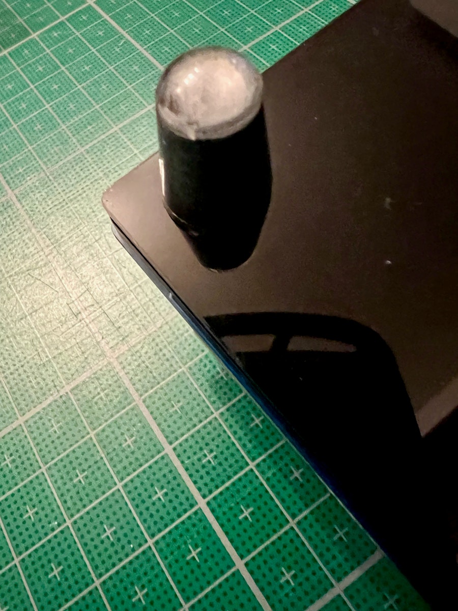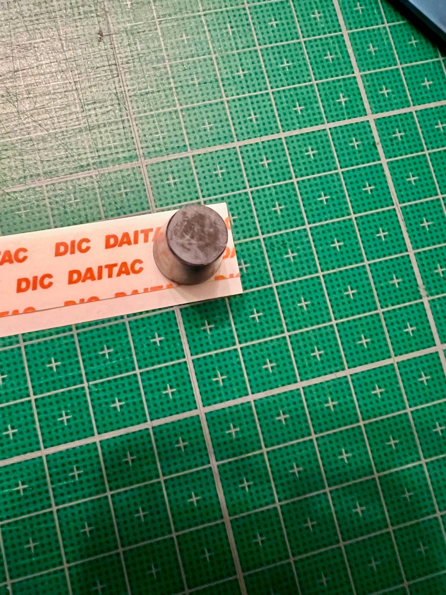 ゴム足用両方テープの上に黒いゴム足(大)の面積の広い方をおいて、ハサミでカットするあたりを付けます。
