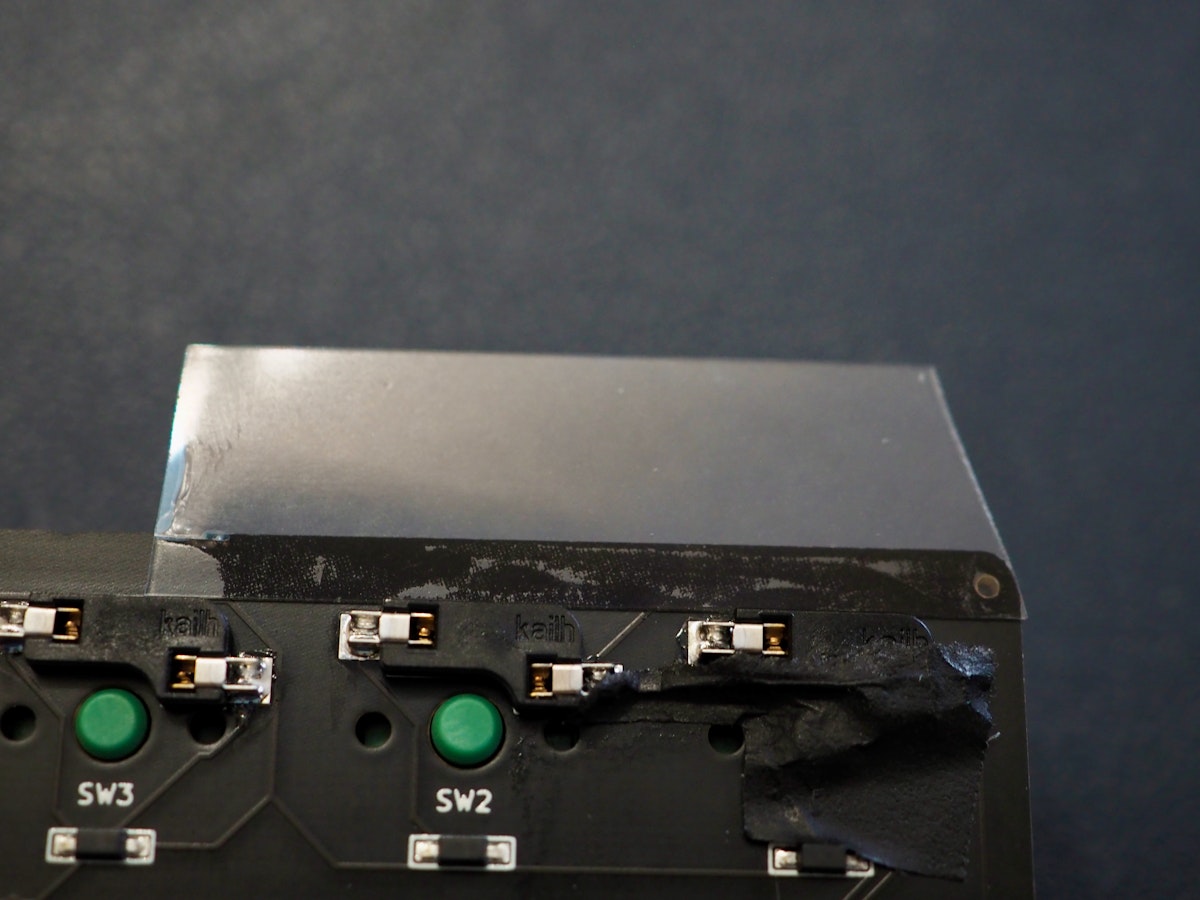 写真はテープが少ないですが、ボトムプレート間を剥がすとことはあまりないと思うので、多めにテープをつけても問題ありません。