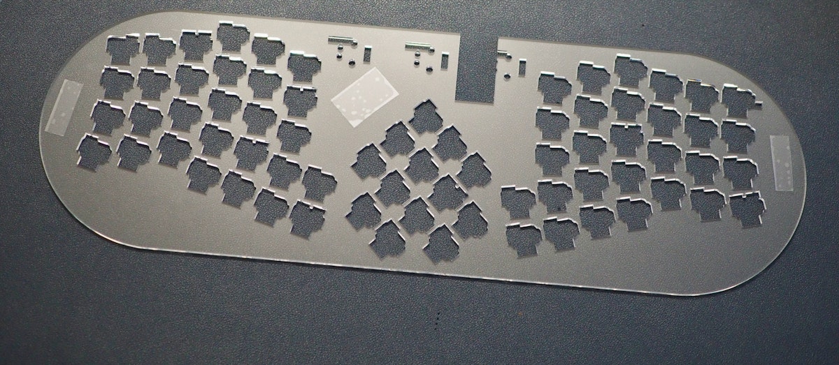 テープを貼る前に一回メインプレートに合わせてアクリルの向きを確認してください。
