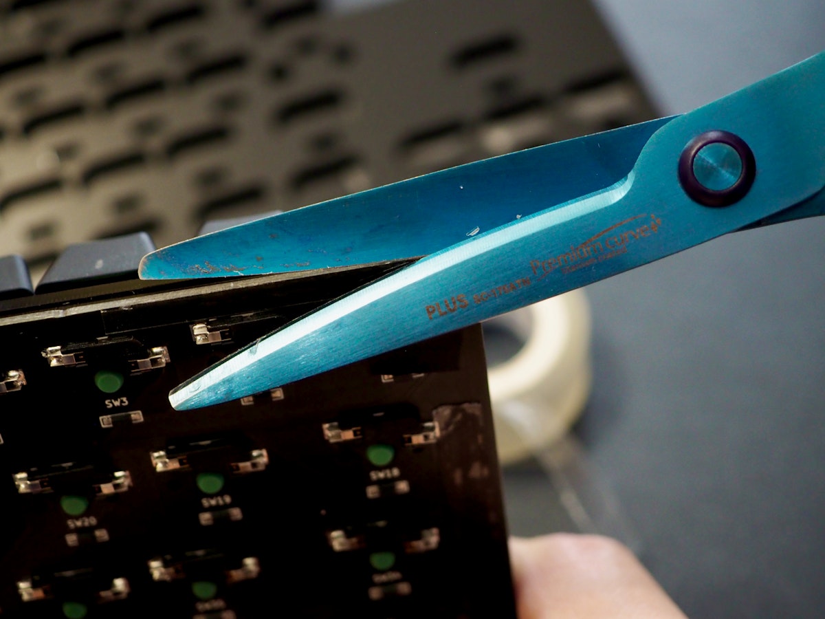 その時は写真のようにざっと貼り付けたら、テープを細くカットしてください。