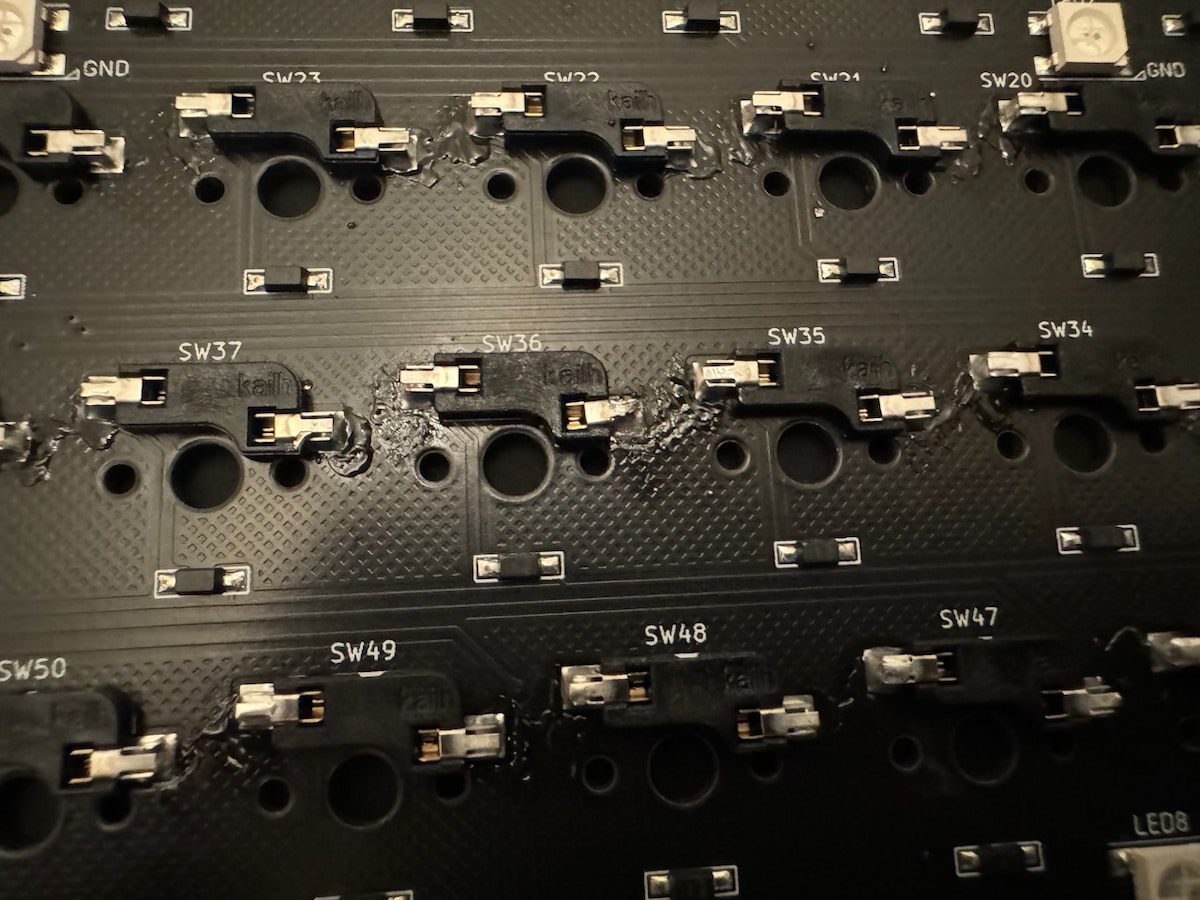 ファームウェアを書き込んだら組み立て前にキースイッチ、LEDの動作確認を行なって下さい。