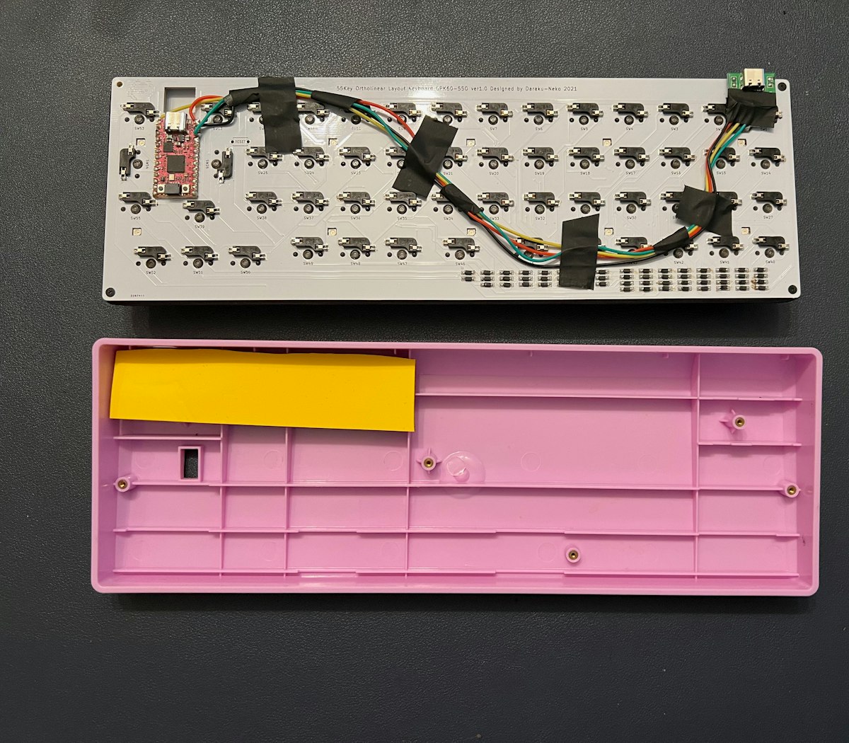 これでケーブルを繋いで打てれば後はキーキャップを付けるだけです!