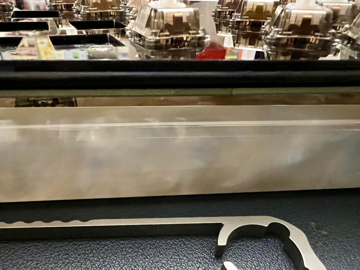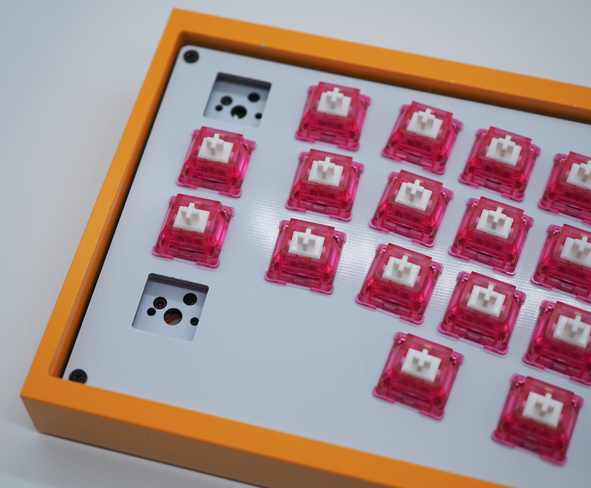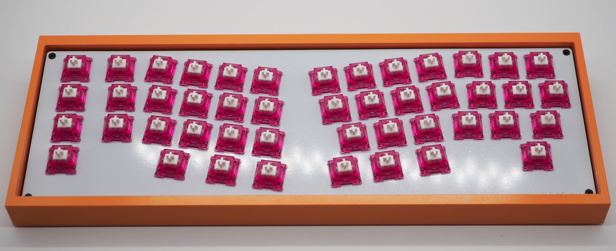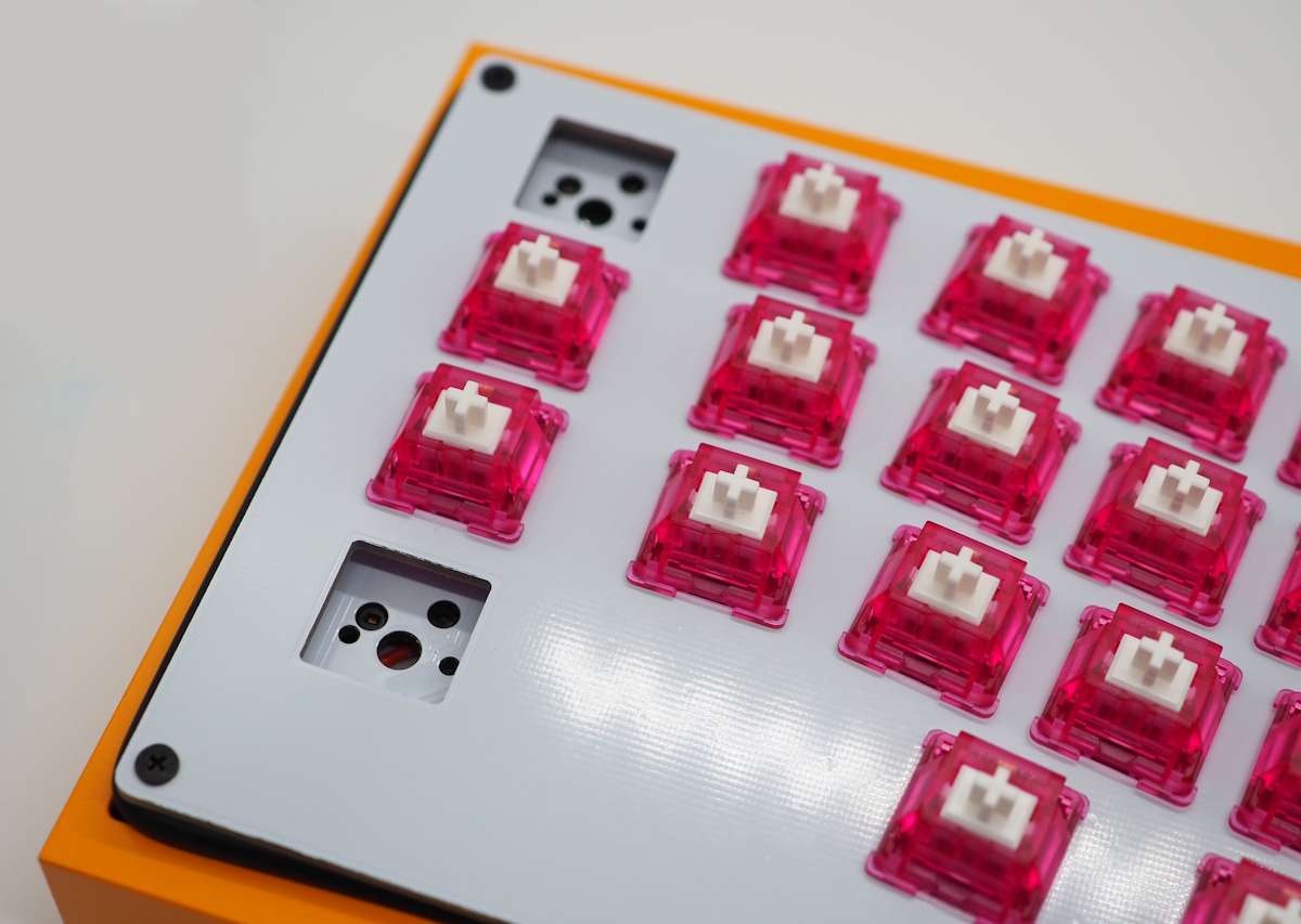 ケースに入れるのが少しきつい場合はトッププレートとメインプレートの隙間にOリングを入れる(特に上下左右の真ん中付近)と、ケースに入れやすくなると思います。