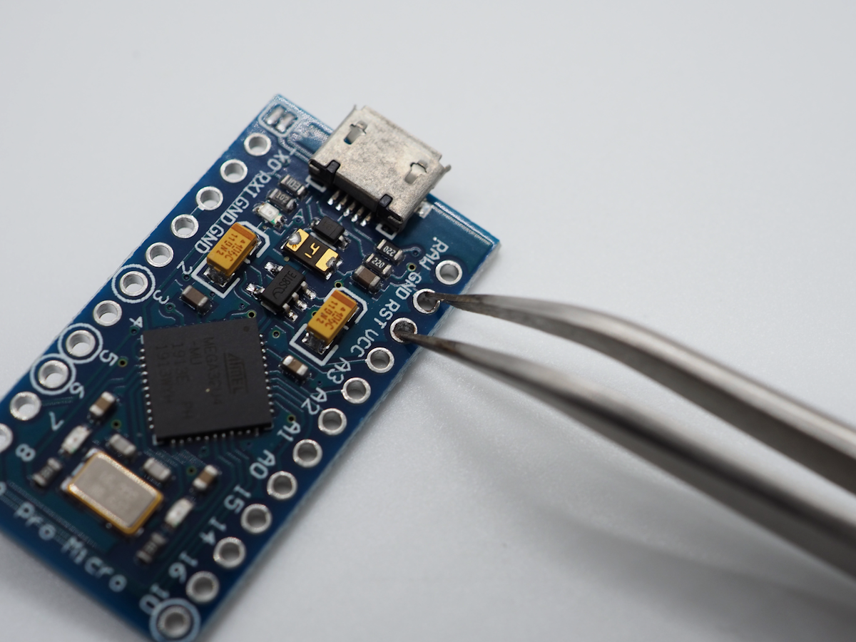 リセット(Bootloader) モードにするにはGNDとRSTをピンセットなどでショートさせてください。