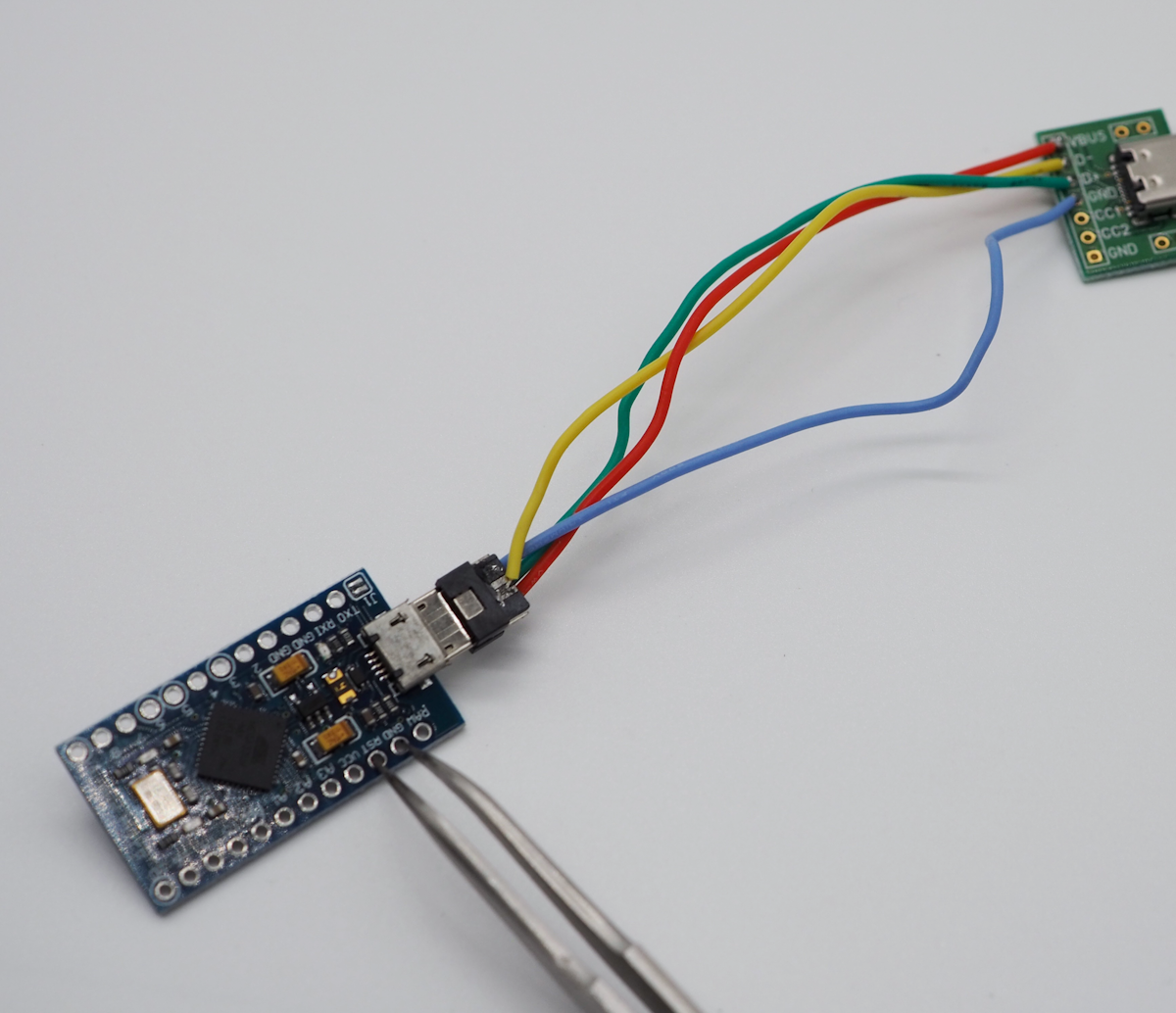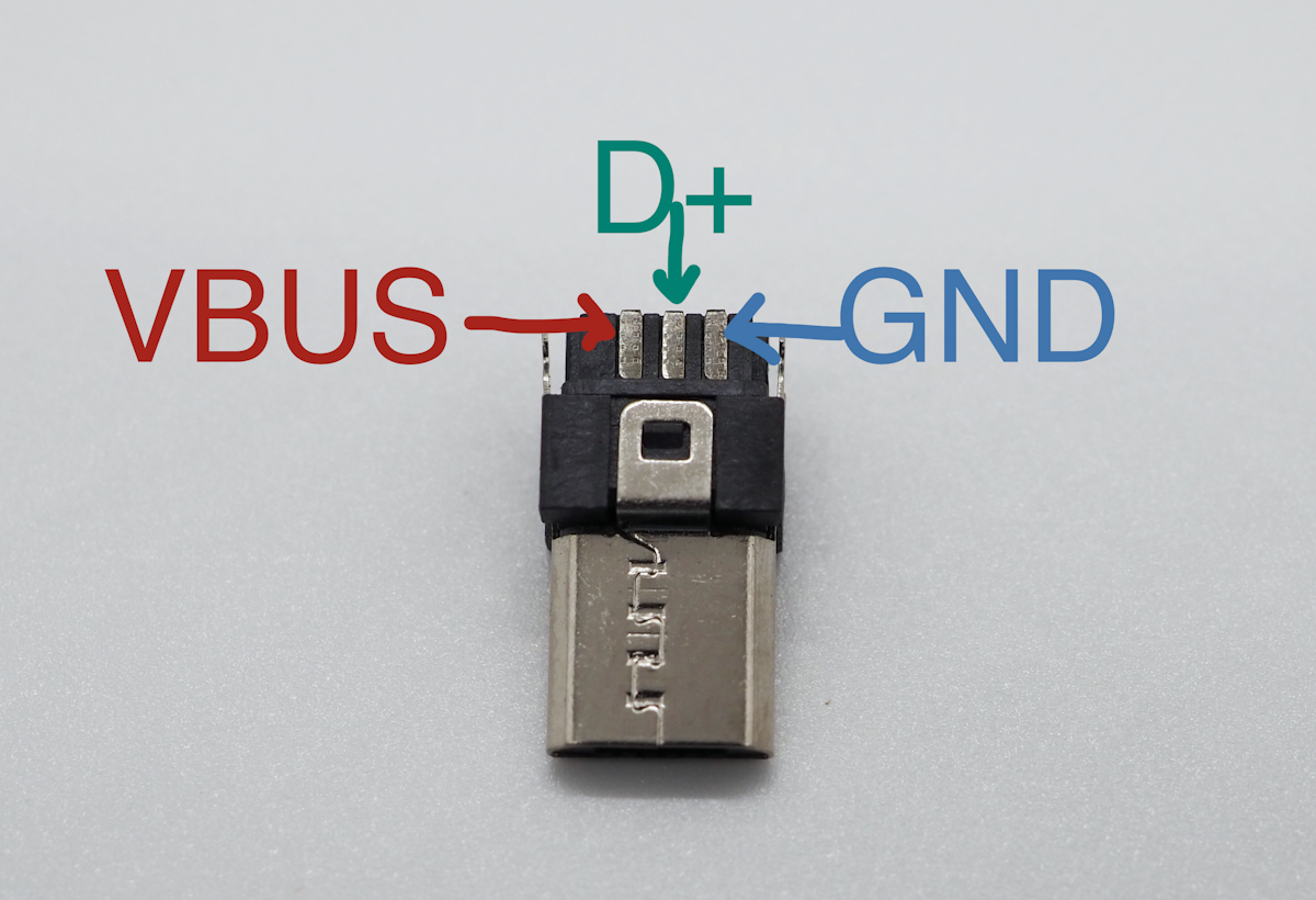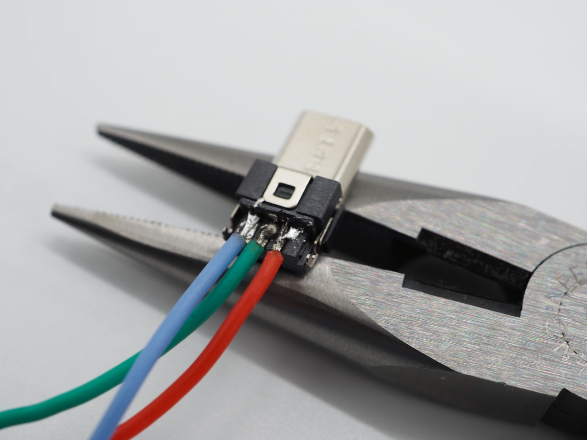 付ける際に線をよじり、線にあらかじめ半田をつけ、microUSBコネクタ側にも予備ハンダをしておくと付けやすいかも知れません。