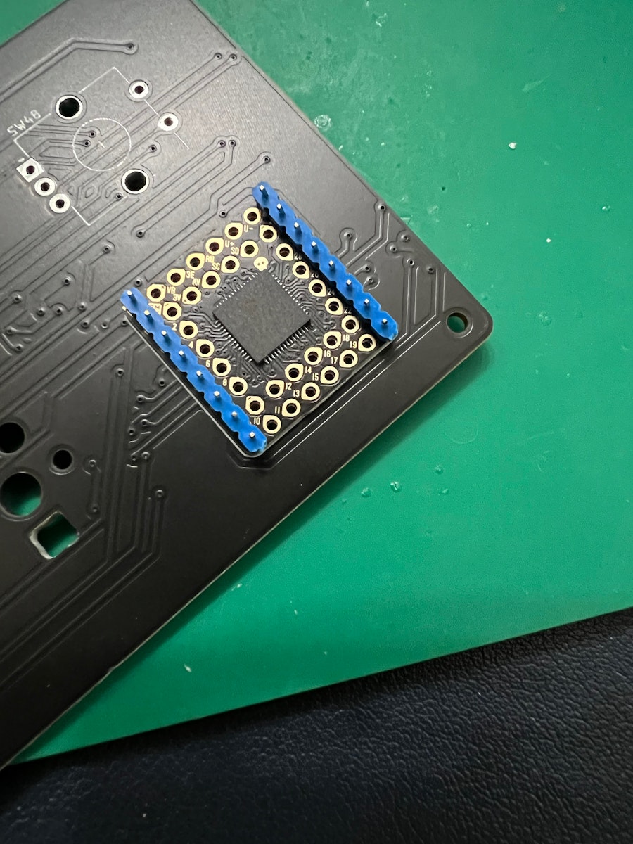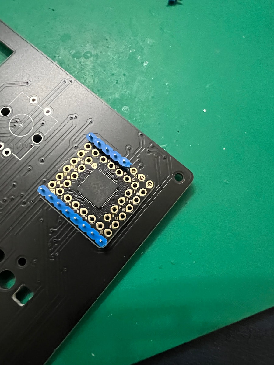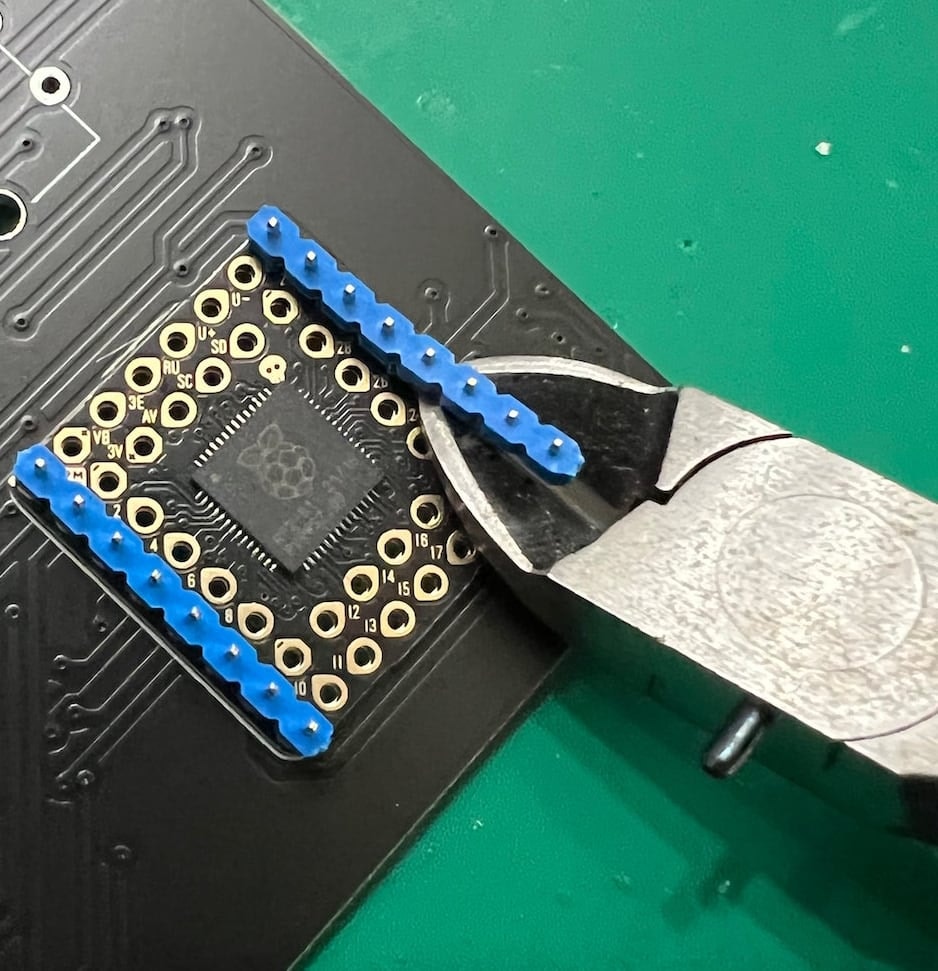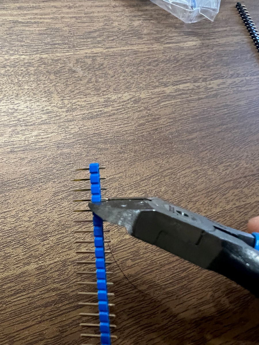 後は同じように残りのピンも細ピンヘッダをピン数に合わせてニッパーで切って、左右1列ずつ半田をしていってください。