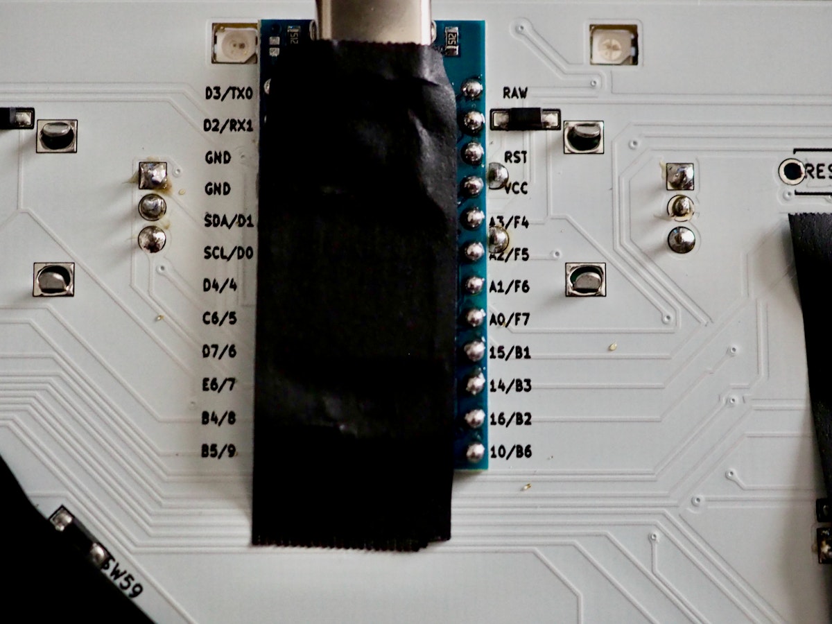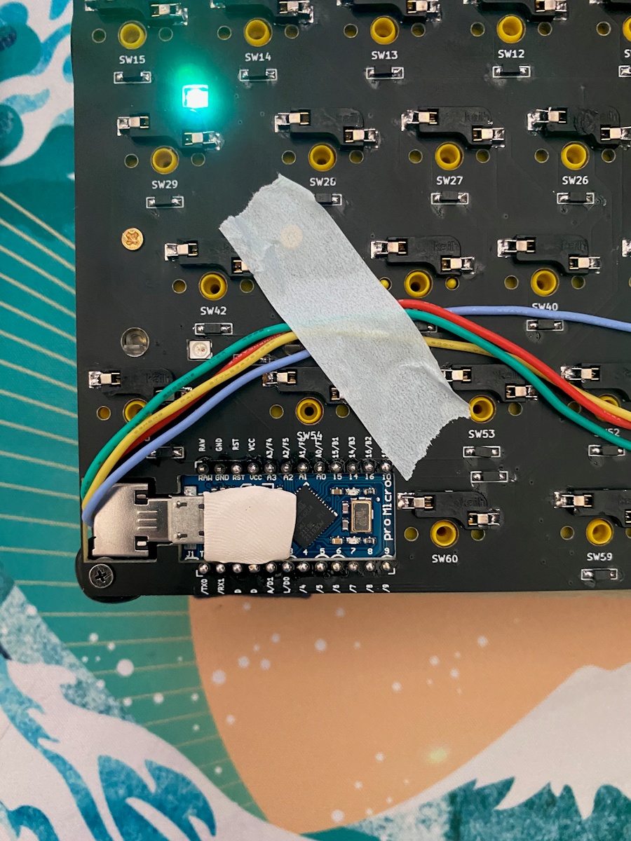 装着し直してケーブルをつくなぐとProMicroのLEDが消え、Underglowの光りが見える様になりました!