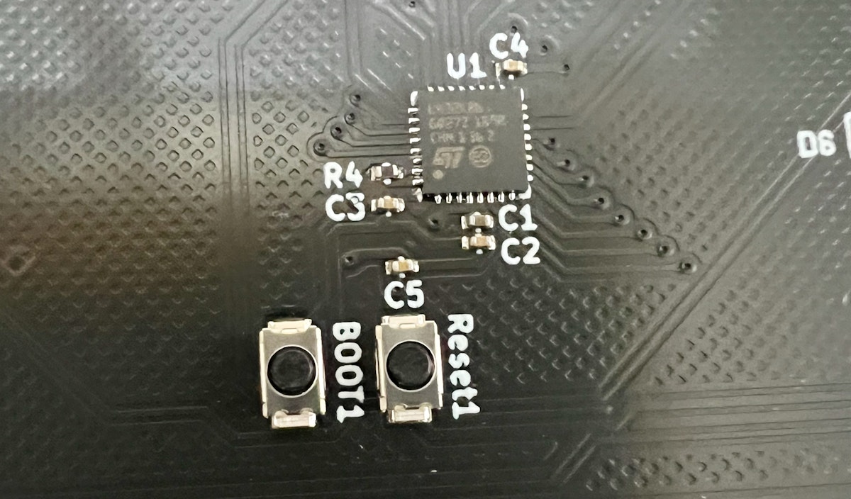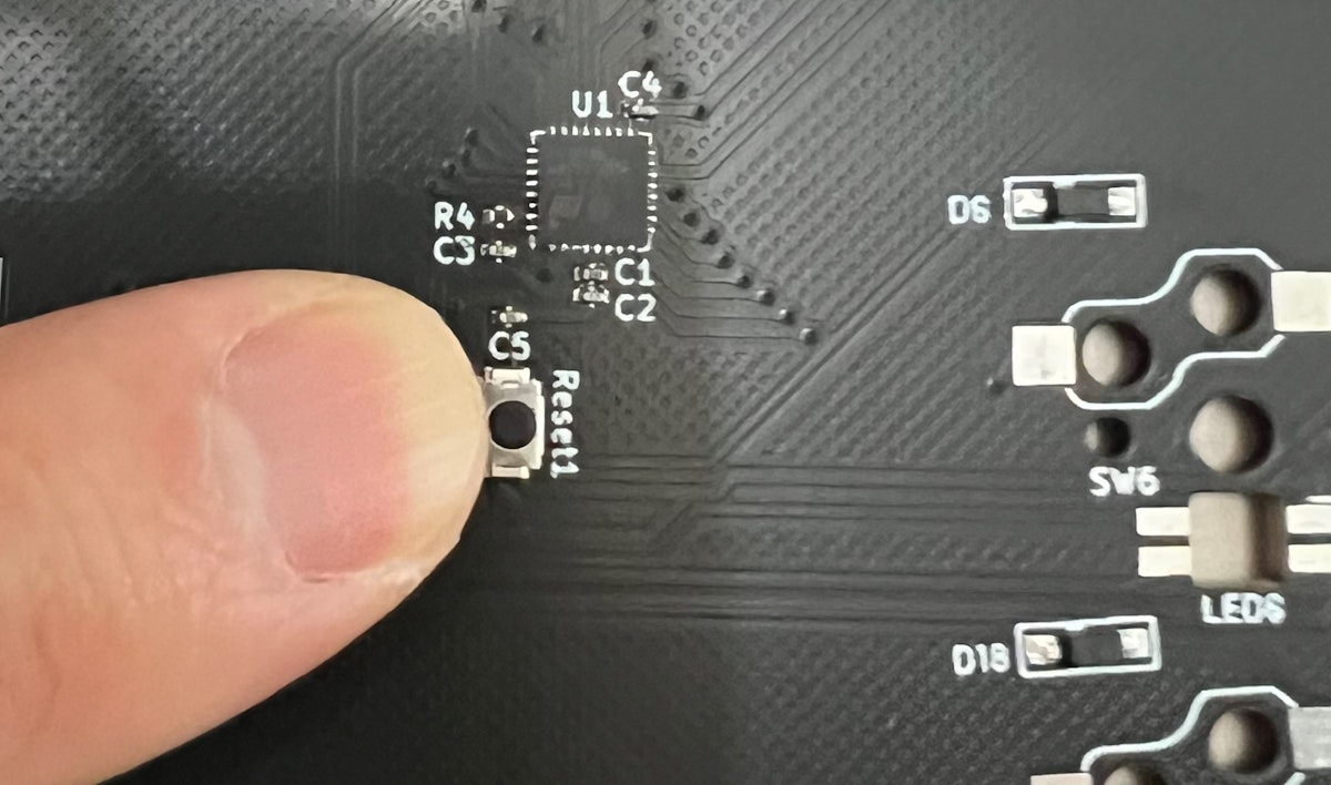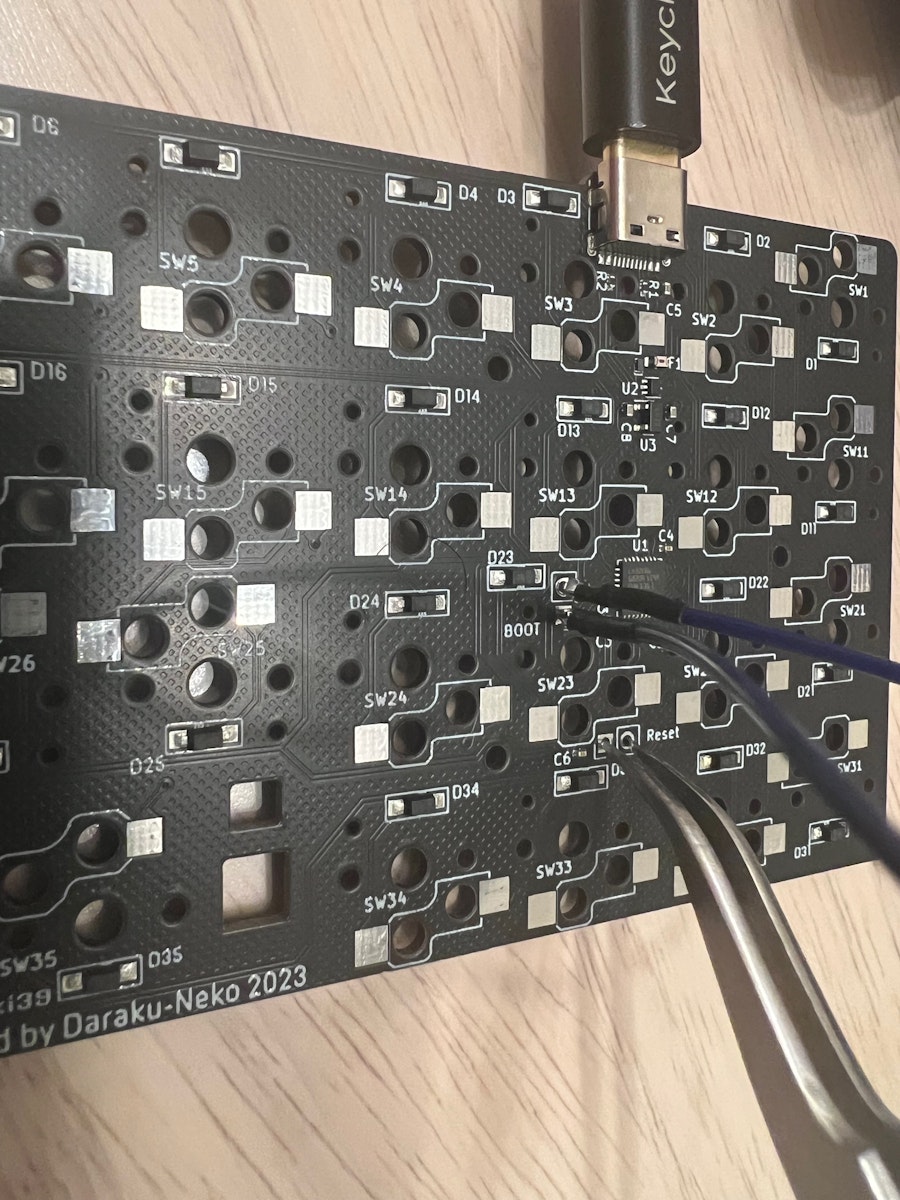 connectedが出ない場合は写真のようにキーボードをつなげBOOTをショートさせた状態でResetを一回ショートさせて離してください。
