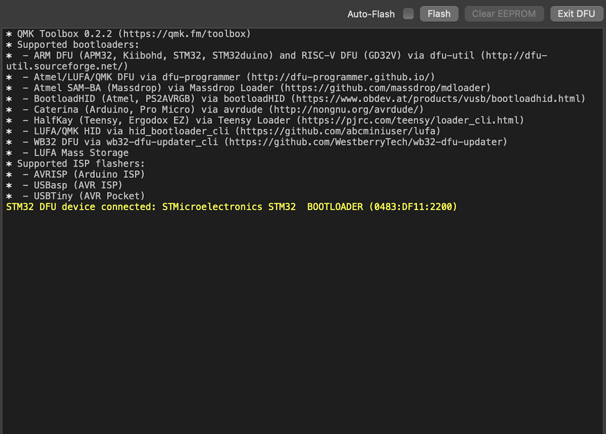 QMK Toolboxを立ち上げ、キーボードを繋げるとconnectedと表示されます。