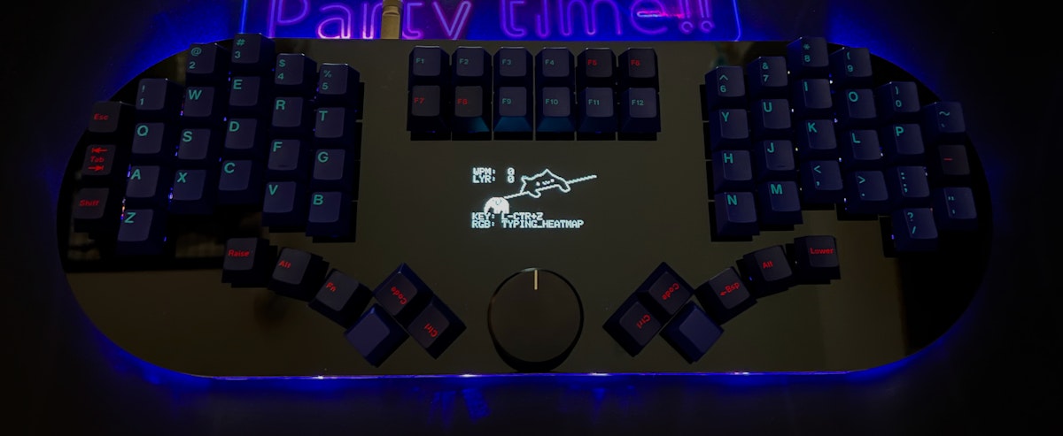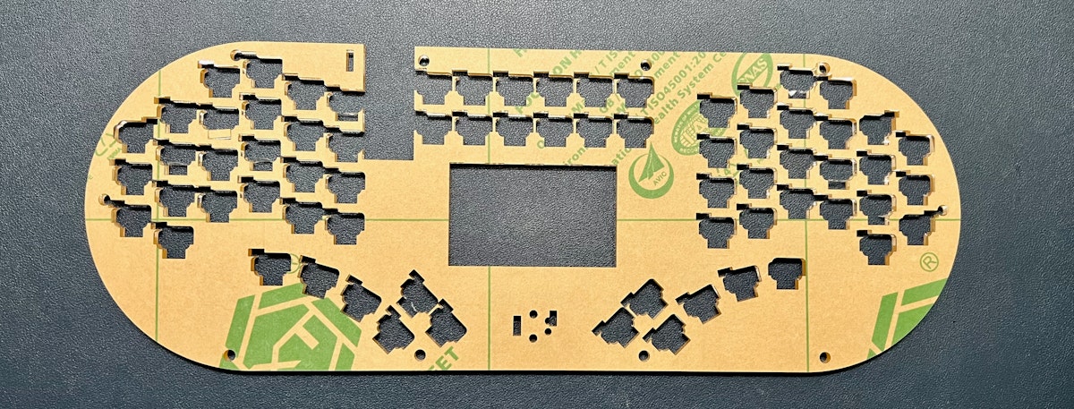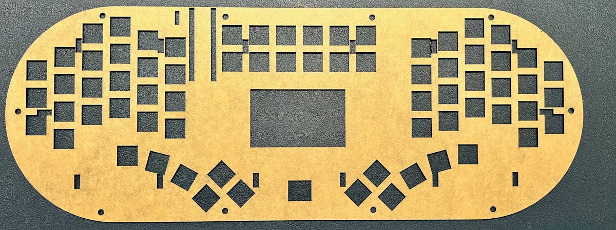 ミドルプレート、トッププレートを重ねて、キースイッチを嵌め込み、キーキャップ、ノブを取り付ければ完成です!