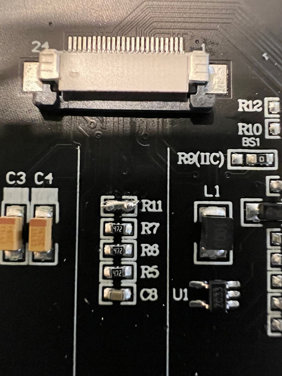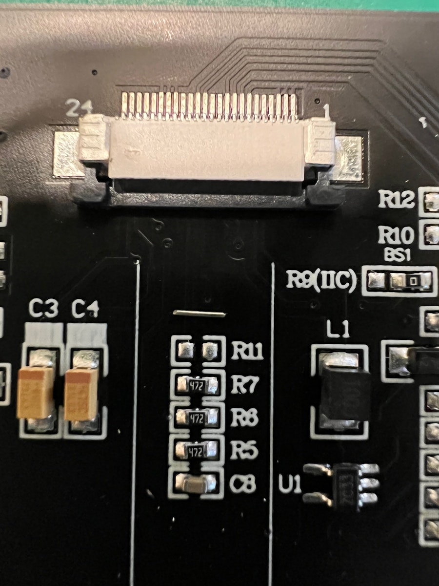 半田をする前にフレキをマスキングテープなどで固定しておくと、邪魔にならず作業がし易いです。