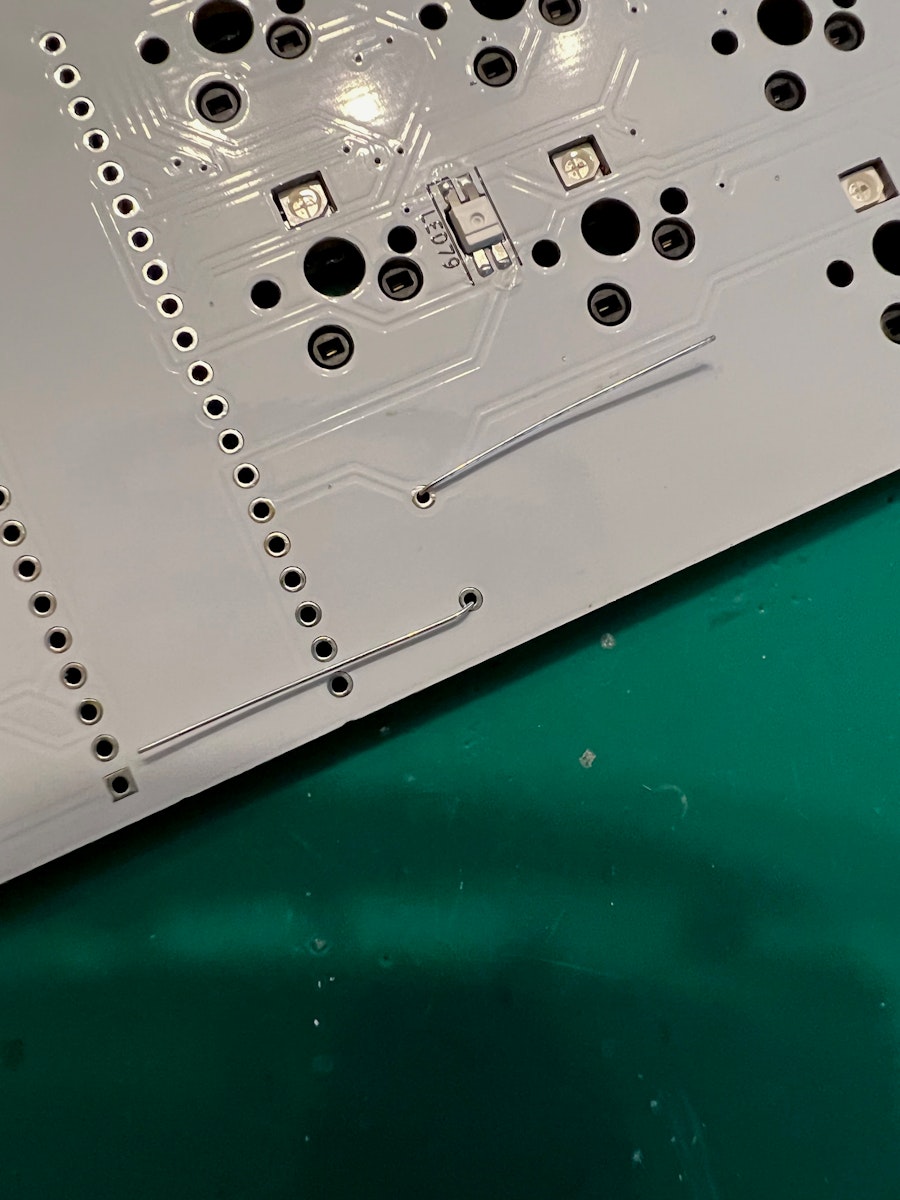 0Ω抵抗がついてるので、それを使っても半田だけでも、抵抗の足でも、ご自身のやり易いやり方で行ってください。