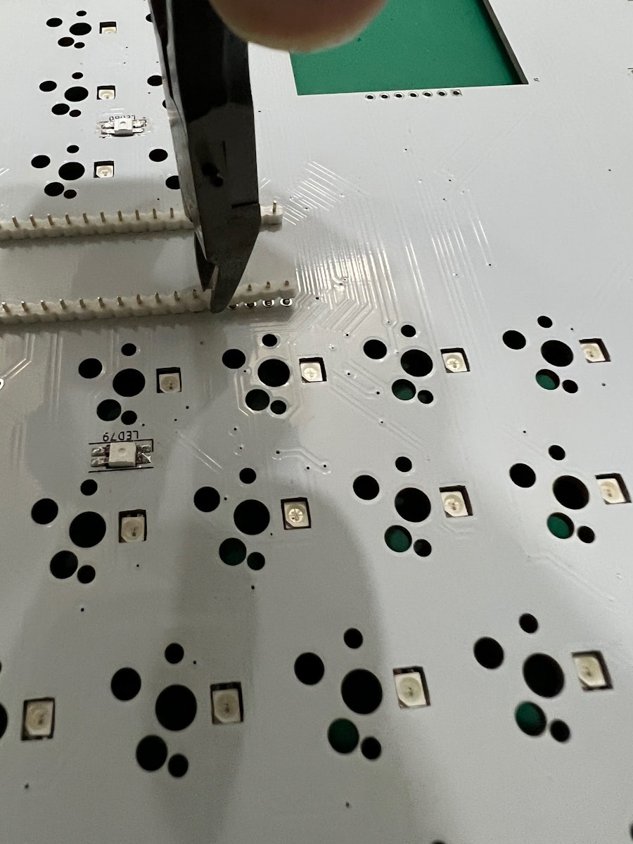 四隅を半田したら、ニッパーで全てのピンをカットし半出します。